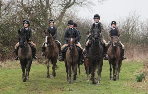 Fitzwilliam Hunt Pony Clubbers: Despite the very cold rain, nothing deterred this a group of smiling Fitzwilliam Hunt Pony Clubbers out with the Fitzwilliam Hunt. (L-R Tyler Tayor, Hazel Petch, Becky Anstey, Kerrie Aschettino – instructor, Maddie Kirk, Beth Blackman – first time out on her new horse Hector, Harry Kirk) Photo courtesy of Lisa Blackman