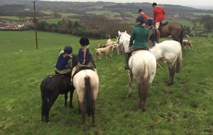 Cheshire Forest Hunt: At the end of the day following a meet of the Cheshire Forest Hunt during half-term. From left to right, Harriet Mather (8) on 33 year old Bea, Felicity German (6) on 27 year old Sugar Puff, Ellie Callwood (12) on Darcy and Martha German (11) on poppy. Martha and Felicity are daughters of the huntsman Andrew German and Ellie is the daughter of the amateur whipper-in Andrew Callwood. Photo courtesty of Sonya German