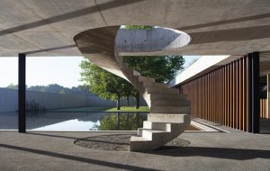 The concrete staircase leads up to a turfed roof, where visitors can settle down to watch a chukka or two