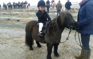 Emma Gaffney, aged two, on her mini Shetland Whisper out with the Dumfriesshire and Stewartry Foxhounds