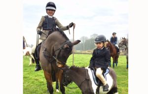 Neha Walker, aged 12, on Ledgend with her friend Phoenix Hodge, aged three, on Tina out with the Mendip Farmers