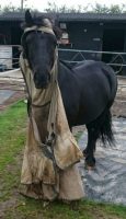 “This is my Fell pony New Times Silver Ghost (Ghosty). Being a hardy native type he does not appreciate the wearing of any clothing whatsoever. I always end up finding his clothing intact but over his eyes, round his neck or trailing behind him in the field.” — Julia Prentice