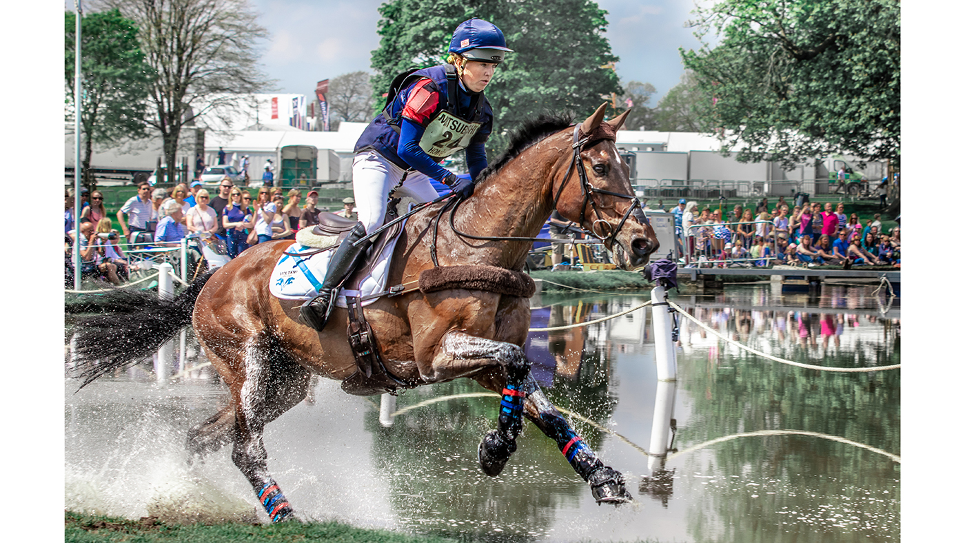 And finally, the judges loved the drama of this back view of Georgie Strang and Cooley Earl pinging into The Lake at Badminton last year, taken by Alesha Christian.