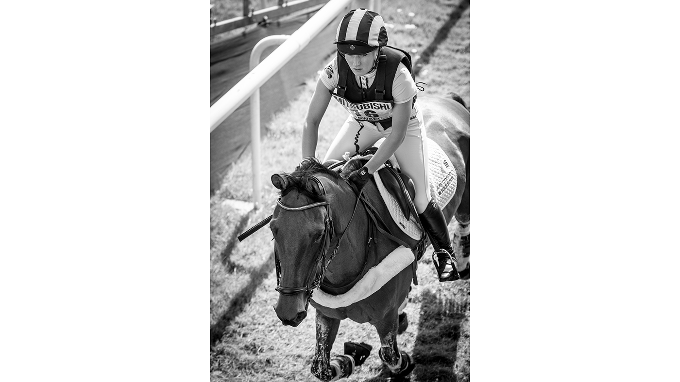 The judges loved the unusual angle of this picture of Alicia Hawker and Charles RR, taken by Sandra Groves looking down from the stands at Badminton as the pair left the main arena to head out onto the cross-country.