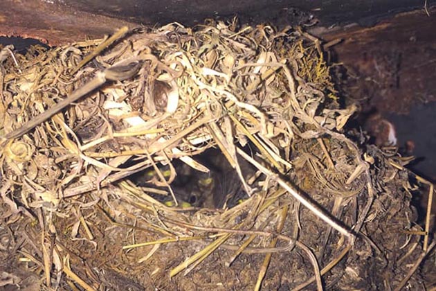 “I hadn’t used my lorry for a while so drove it home one Friday night, which includes travelling two junctions down the M4. When I got home, something made me check underneath and I found four stowaways in a nest! I promptly turned round, back down the motorway and safely returned them to their mum! They fledged a few days later.”