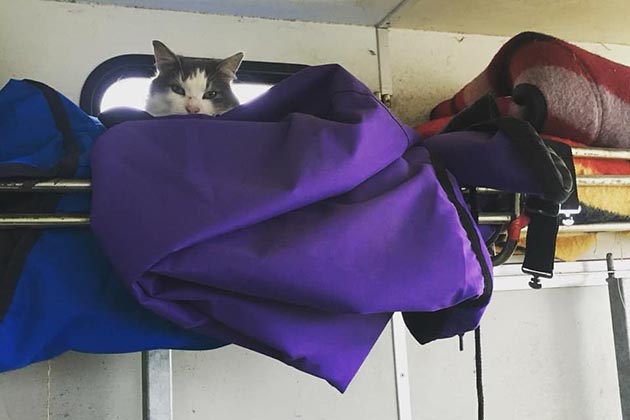 “Here in New Zealand a couple of months ago, I was driving six hours to an endurance competition when I stopped to fill up with fuel and check on my horse, only to find one of my cats in the back. My heart sank — I was very lucky she hasn’t jumped out the back. She had a quiet weekend locked in the trailer and the standing joke around the ride base was she should be my mascot and travel to all the competitions with us. She didn’t learn anything as was straight back in again when unpacking.”
