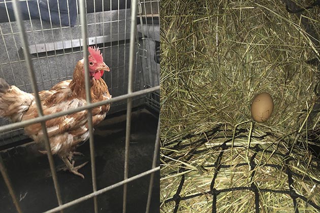 “Meet ‘Eagle’, one of our recently rescued hens (from the wonderful people at Fresh Start For Hens). I recently took my horse to Keysoe to do some British Dressage. On arrival, I went to find his water bucket stored in the spare compartment of the horse area only to find Eagle sitting on his spare haynet complete with lovely, warm egg! Thankfully with some quick thinking I managed to scoop her up and put her in the safety of the living area in the dog cage (thankfully the dogs were at home). She was quite happy, clucked madly at me every time I returned to the lorry, shared my lunch and travelled home very quietly! She brought us some luck too as my horse did some respectable tests at a venue he usually finds very intimidating, so maybe he enjoyed her company on the trip there… She returned happily to her friends that evening, no doubt with great tales of her adventure!”