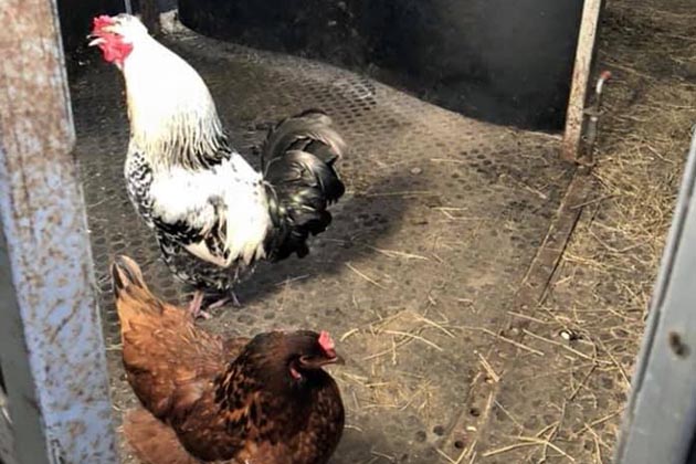 “This isn’t quiet a stowaway but this is our lorry chicken, ‘Nugget’. He completed the end of the 2018 in the lorry with us and is now practising his doodle-do-ing ready for 2019. Here he is pictured at a British Eventing competition at Little Downham on top of our best ever lorry dog.”