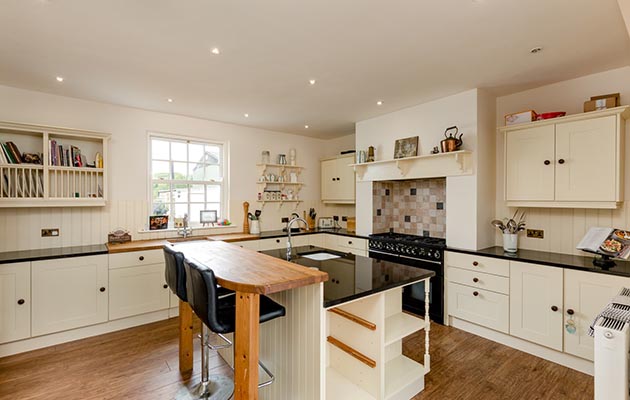 … and a kitchen with black granite work surfaces and central island.