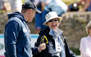 On home turf: Princess Anne shares a joke with her son-in-law Mike Tindall, in the grounds of her home