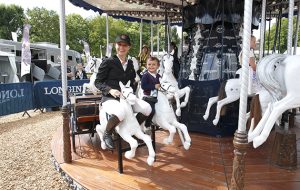 America’s Georgina Bloomberg opts for a different sized mount to enjoy the Longines carousel with her son Jasper