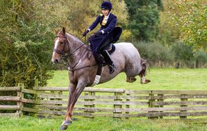 “This is my maxi cob The Pink Anchor. She’s named this because of her size and colouring. She is the hunter of a lifetime! The boldest horse I’ve ever sat on, and everyone at the Zetland Hunt knows her name. This is my second season on her, and we’ve visited the Quorn this season too. I hunt her both side saddle and astride. She always looks after me — last week we jumped one of biggest hedges I’ve ever jumped side saddle! In the summer I do side saddle equitation classes on her and she’s much loved by all of the family” — Jane Dobinson