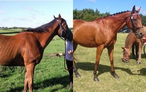 “This is my ex-racehorse, Senator Logan. He came to me straight off the track as a three-year-old in 2010. He had colic surgery at the age of five so we had quite a major setback in his education. We now enjoy hacking and competing at local shows where this year he won overall champion ridden and in-hand thoroughbred at our end of season presentation. The first picture was taken the week I got him and the second was taken at a show this summer” — Katie Nesbitt