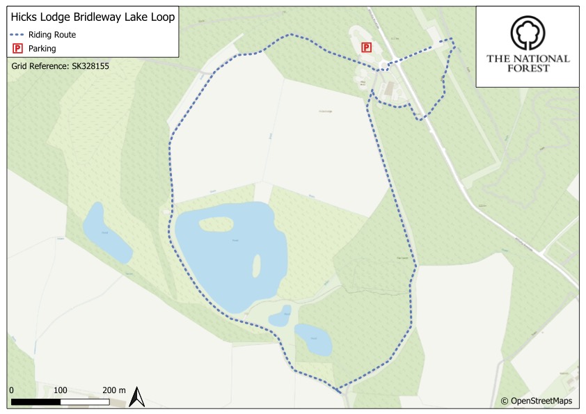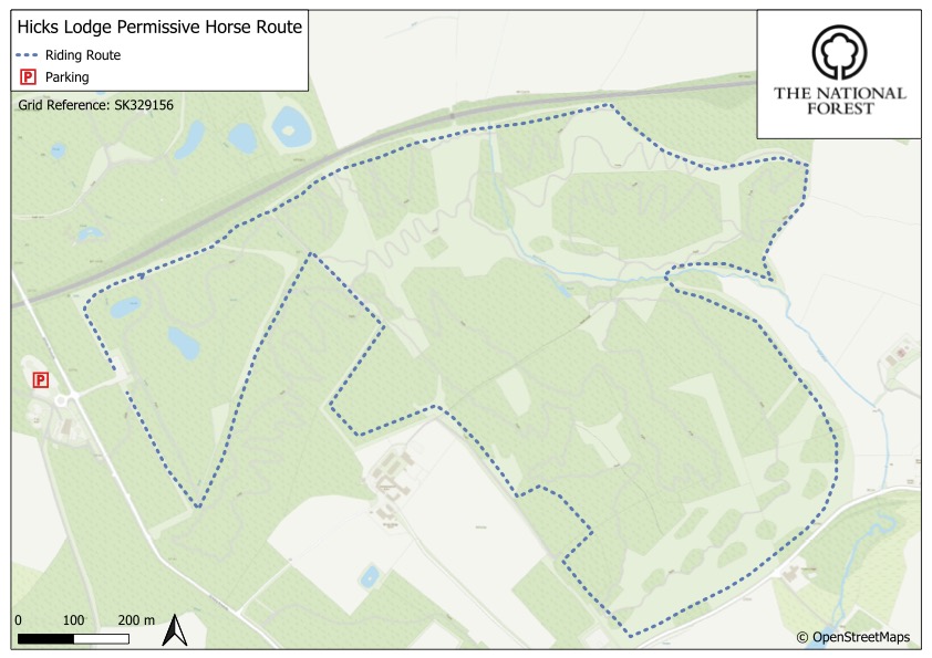 Hicks Lodge permissive bridleway route. Only open April – October. The car park (no height barrier) is accessible by prior permission for horseboxes.