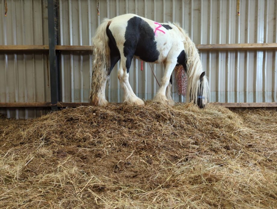 “When he got up off the floor, he was in incredible pain and was rocking back off the front feet and trying to hobble to move,” the vet said. “The pony could only shuffle when moving and was unable to walk properly due to pain. When stood in the pen, he was weight-shifting and had a very painful facial expression.”