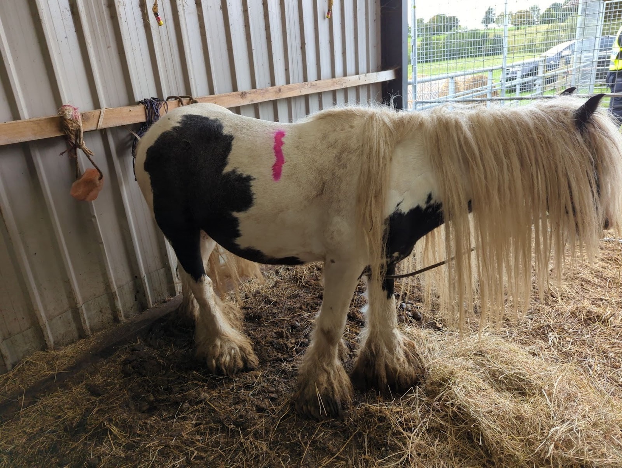 The vet said the pony’s spine, ribs and shoulder were very prominent and his neck was narrow owing to his poor condition. On the vet’s arrival, the pony was lying down in his pen.