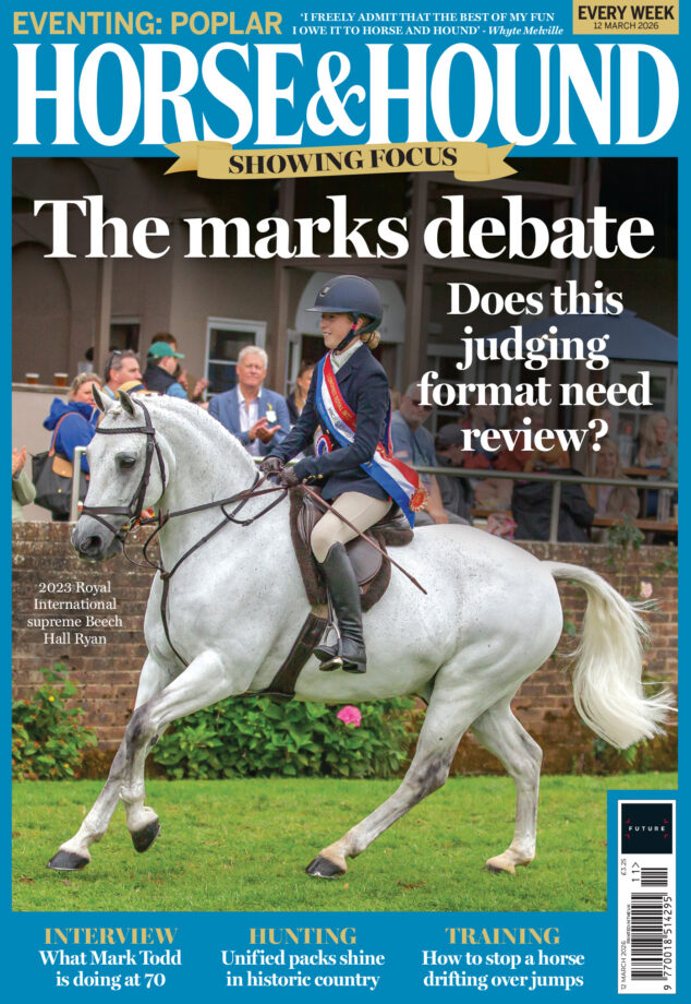 In this week’s edition of Horse & Hound, in shops from Thursday 12 March, our cover story delves deep into the marks system of judging in showing and asks whether it needs review some 30 years after its introduction. Plus,we bring you an exclusive interview with Ben Pauling’s work rider, who happens to be eventing legend Sir Mark Todd. Among the news pages, ponder the future of pre-purchase exams and look at how AI could benefit horse welfare. We bring you an interview with event rider and Badminton hopeful Simon Grieve and in the Vet Clinic, we learn all about equine sensory hairs. This week, our opinion columns come from Anna Ross and Jodie Hall McAteer for dressage and showjumping fans. Discover how to stop your horse from drifting over fences and go on a day out hunting with the Morpeth West Percy. For sports fans, enjoy our reports on the latest eventing, dressage, showjumping, racing and point-to-point action. There are many other articles for equestrian fans to enjoy – see a more detailed breakdown below.