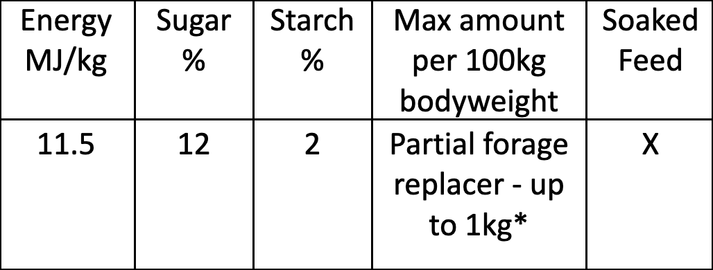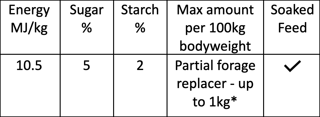 Alfa-Beet is a high-fibre, soaked, mash blend of alfalfa and unmolassed sugar beet pulp. It is ideal for horses with dental issues who struggle to chew. *For specific guidance please contact the feedline.