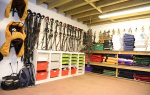 The immaculate tack room, where everything is colour-coordinated and labelled